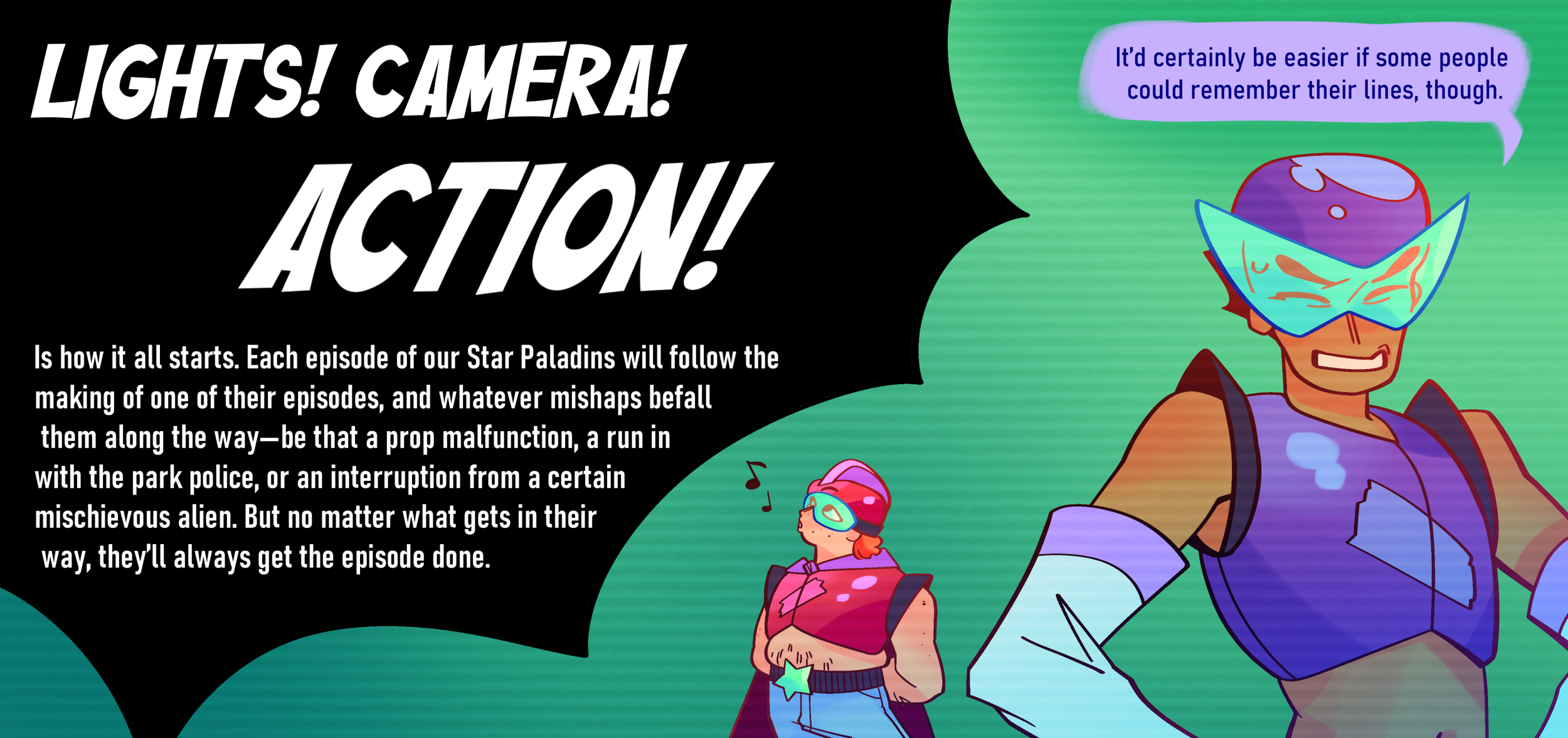 pitch bible about a group of friends who make a superhero show--until they're interrupted by an alien!
